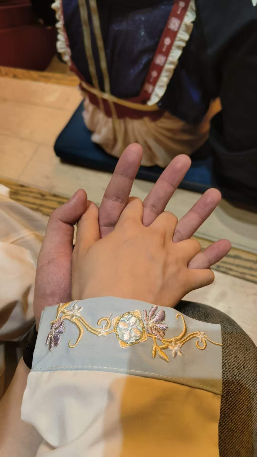 原谅我不太会给你拍照,但是我可以下次改进,在小红书上慢慢学习,我也可以给你排出好看的照片(不是饼哦)。我们一起去看了演出,一起拍下第二次合影(第一次是在婚礼游戏上)。我牵着你的小手偷偷记录下来。